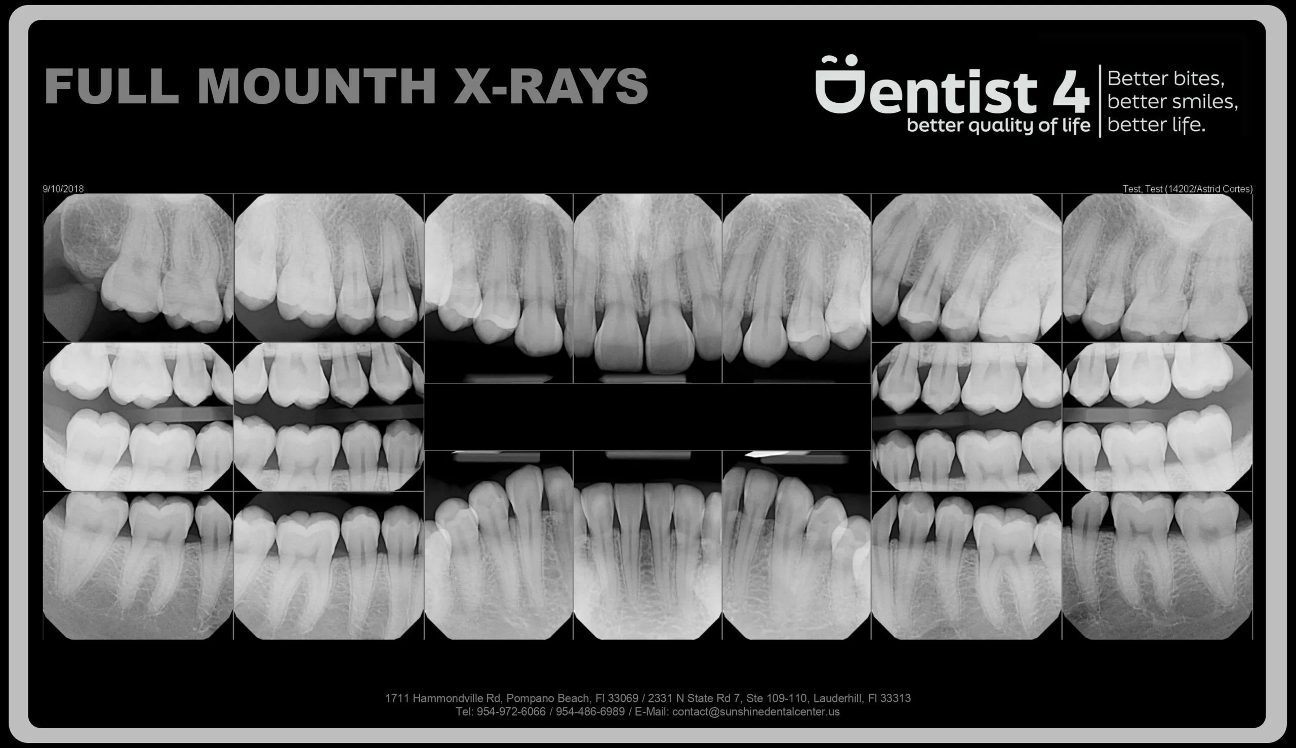Full Mouth X-ray: Full mouth X-rays provide a comprehensive view of the entire oral cavity, including all the teeth, and surrounding structures. This allows us to assess the overall oral health and detect issues such as cavities, infections and impacted teeth that may not be visible during a clinical examination. The use of state-of-the-art digital equipment ensures minimal radiation exposure to patients while delivering high-quality images.