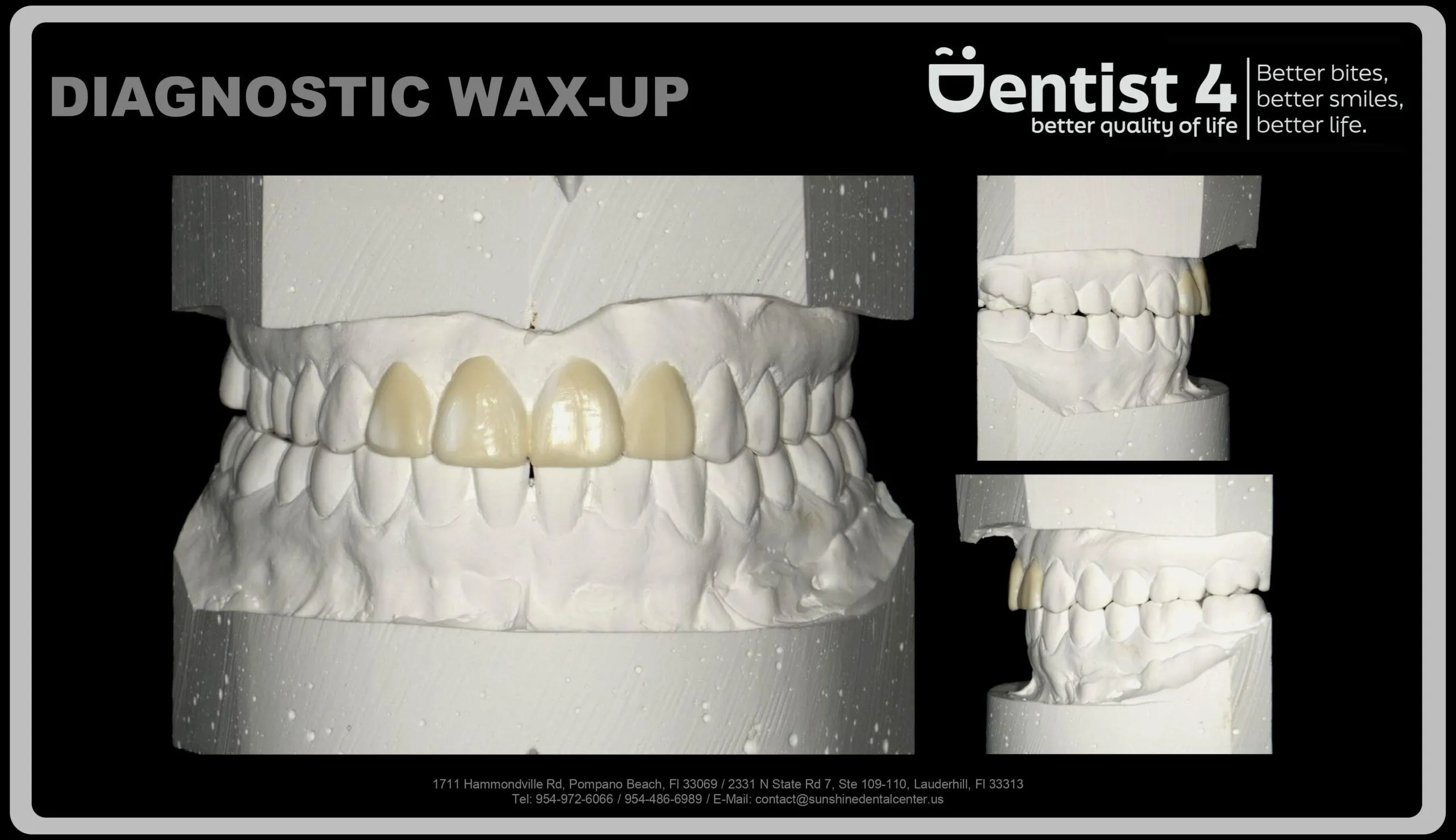 The first step in a dental case study begins with the initial evaluation. During the patient’s initial appointment, our dentist assesses various aspects of the patient’s condition, including facial, dental, and functional aspects. This comprehensive evaluation includes more diagnostic tests such as full mouth x rays, pictures of the patient’s smile and their profile and dental impressions. These help in understanding the patient’s unique needs.